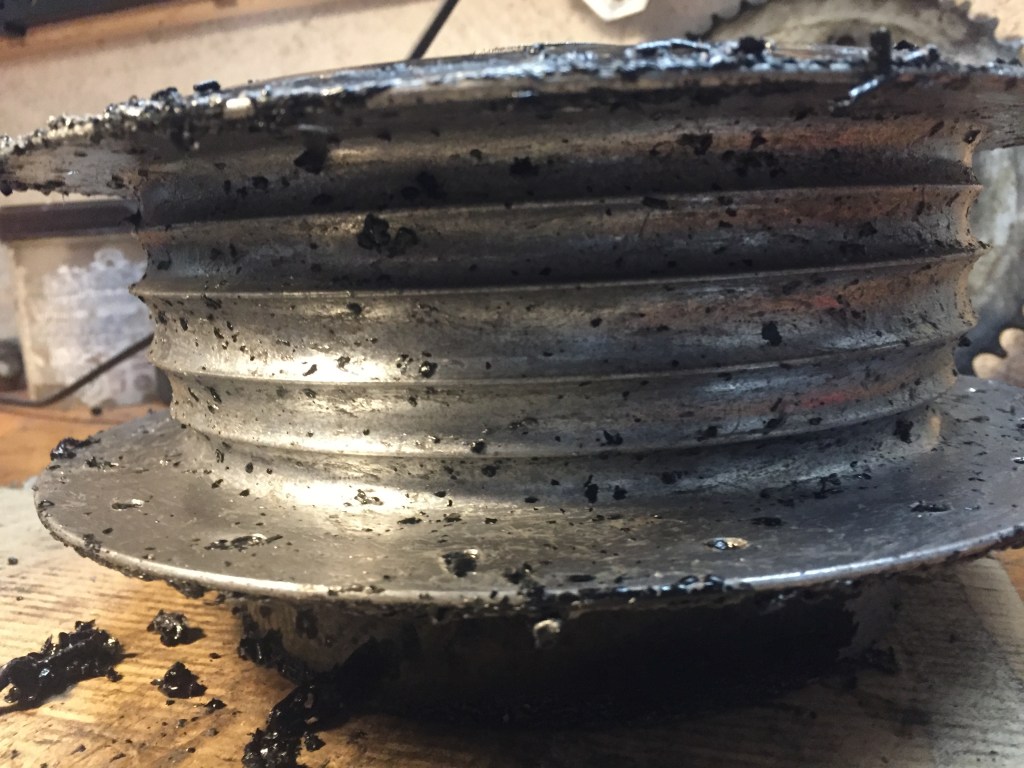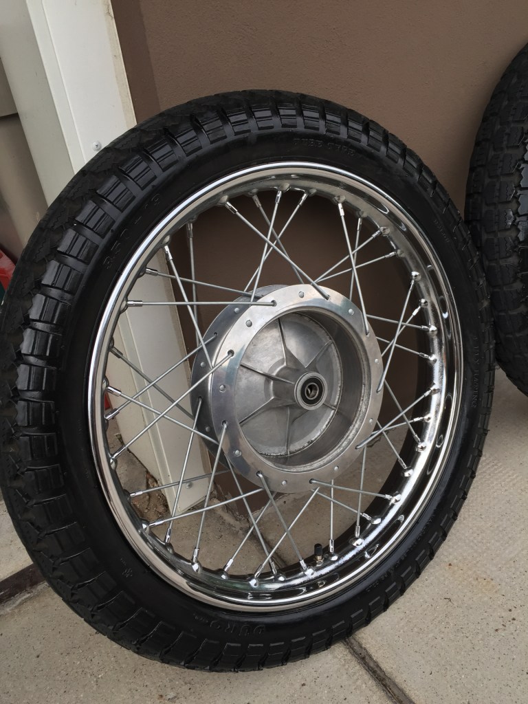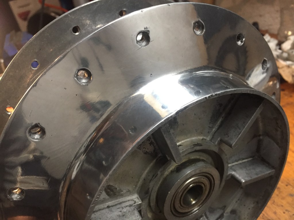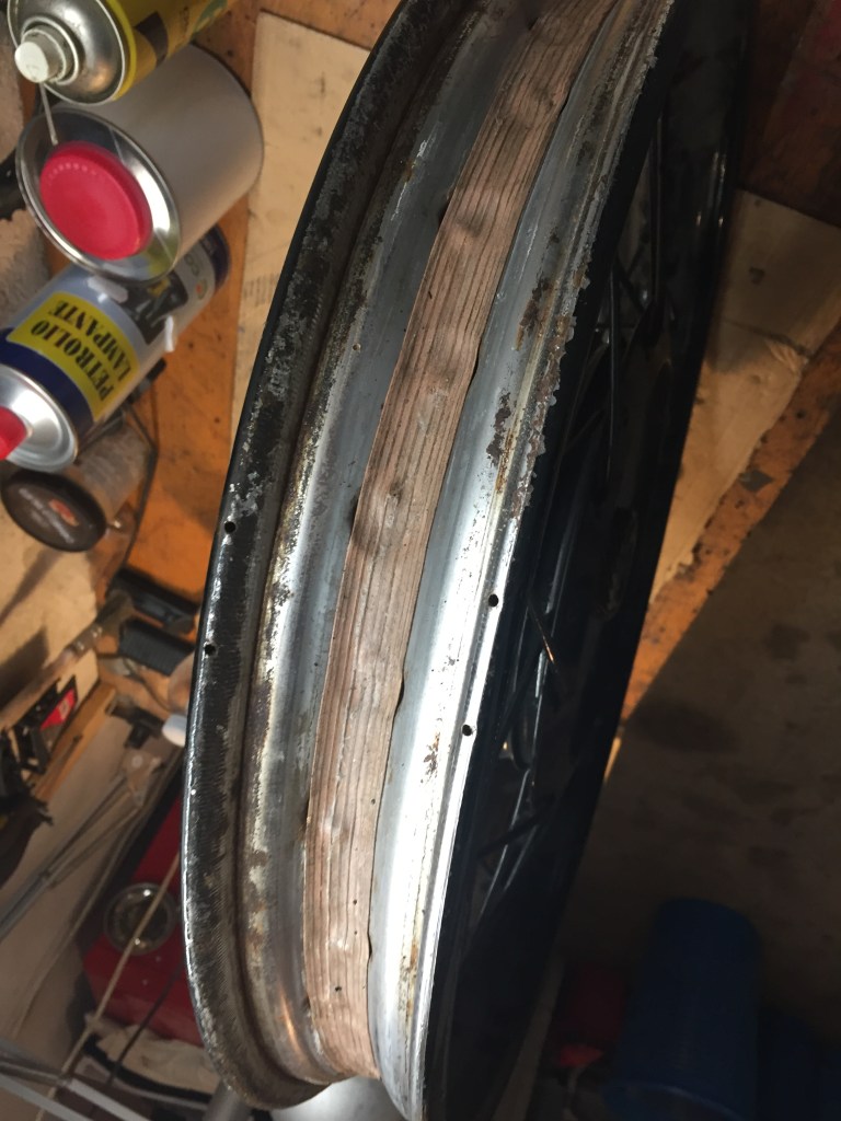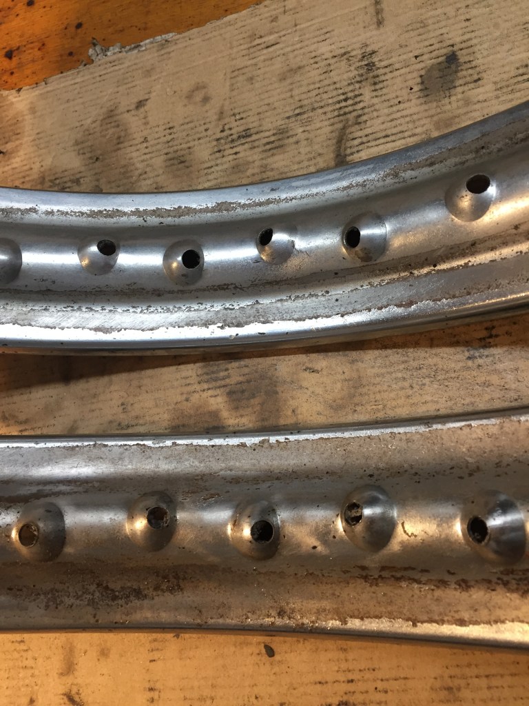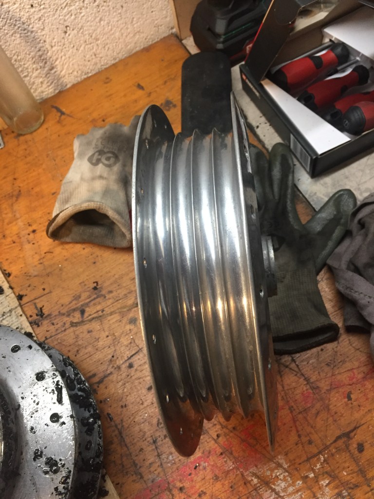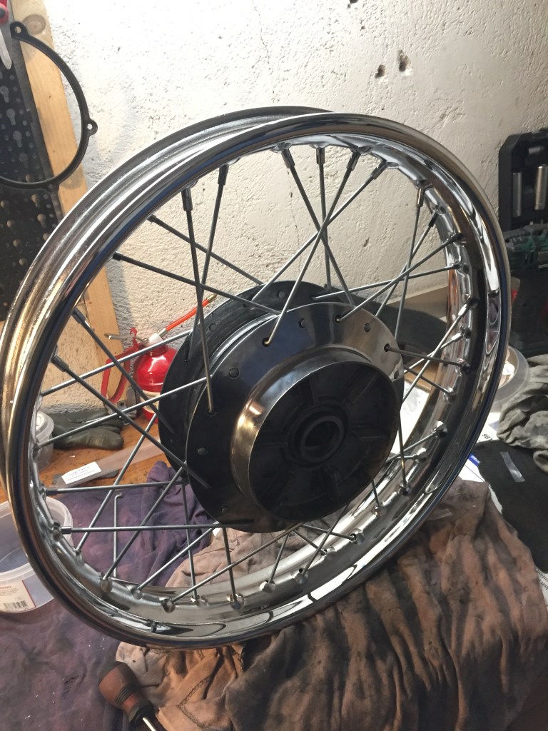 Certo anche le ruote hanno bisogno di cure…in rapporto ad altri componenti poi queste risultano molto più impegnative, bisogna togliere i cuscinetti, smontare tutti i raggi, eliminare la vernice nera che li ricopre, lucidare i mozzi, far cromare i cerchi, rimontare i raggi e stringerli in modo da avere la ruota perfettamente allineata, un grosso lavoro insomma.