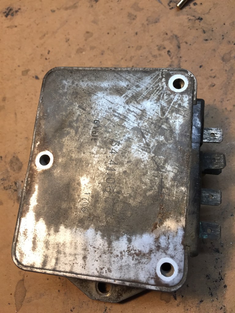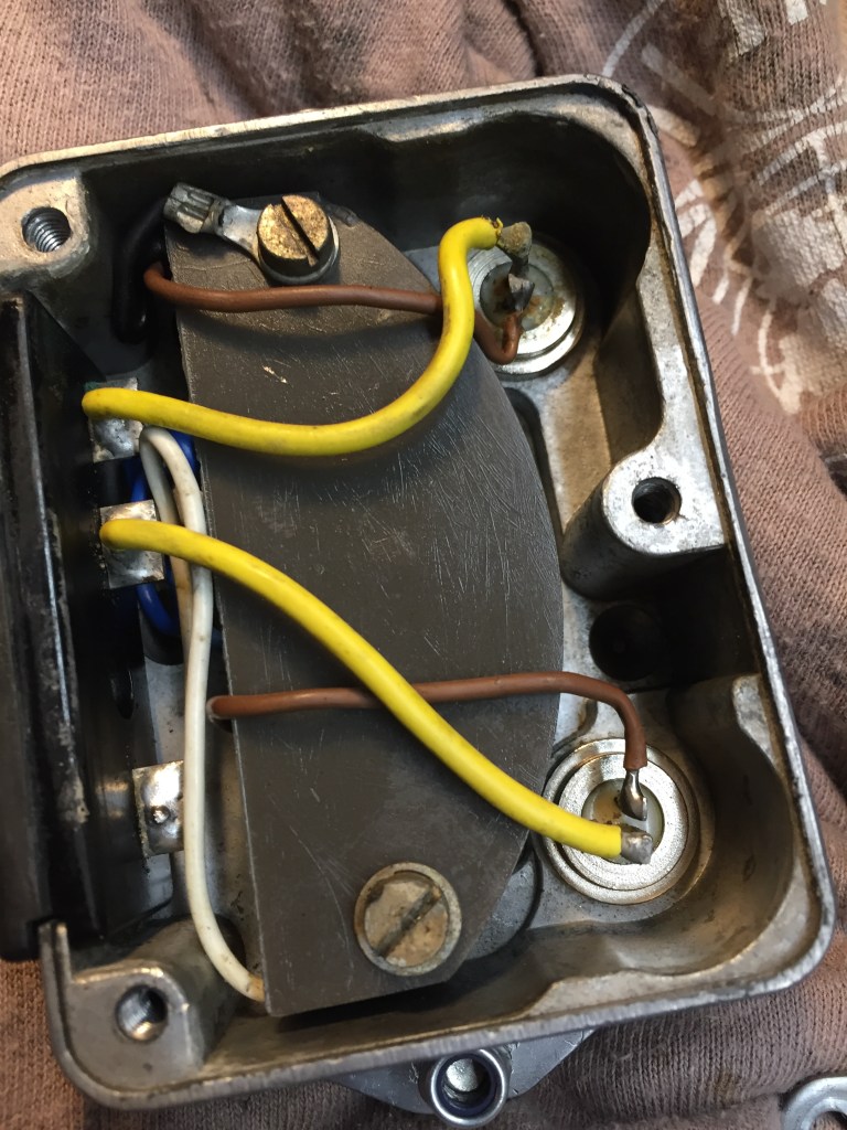 Nonostante sia nascosto in una posizione abbastanza riparata anche il regolatore di tensione, nel corso dei suoi 50 anni e più ha accumulato sporco e ossido, quindi anche lui, come ogni altro componente della moto andrà smontato, controllato, pulito e rimontato.